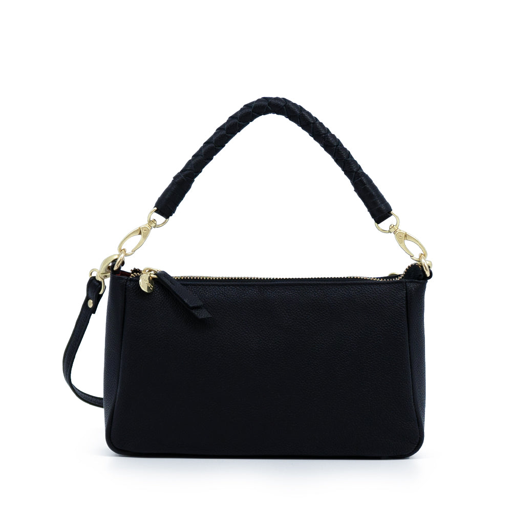 De MŌSZ Coco S is niet alleen mooi om te zien, maar ook zeer functioneel. Dankzij het slimme ontwerp kan deze tas op twee verschillende manieren gedragen worden - als elegante zwarte handtas of als comfortabele schoudertas. De korte band is prachtig gevlochten en voegt een extra vleugje vrouwelijkheid toe aan het geheel.